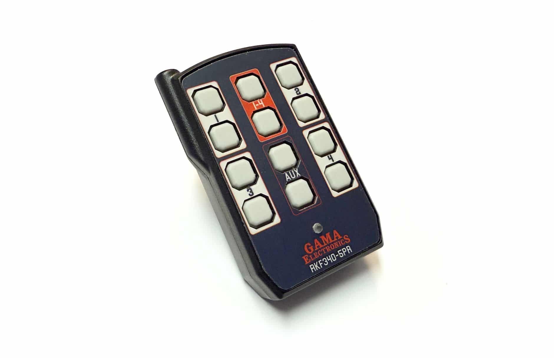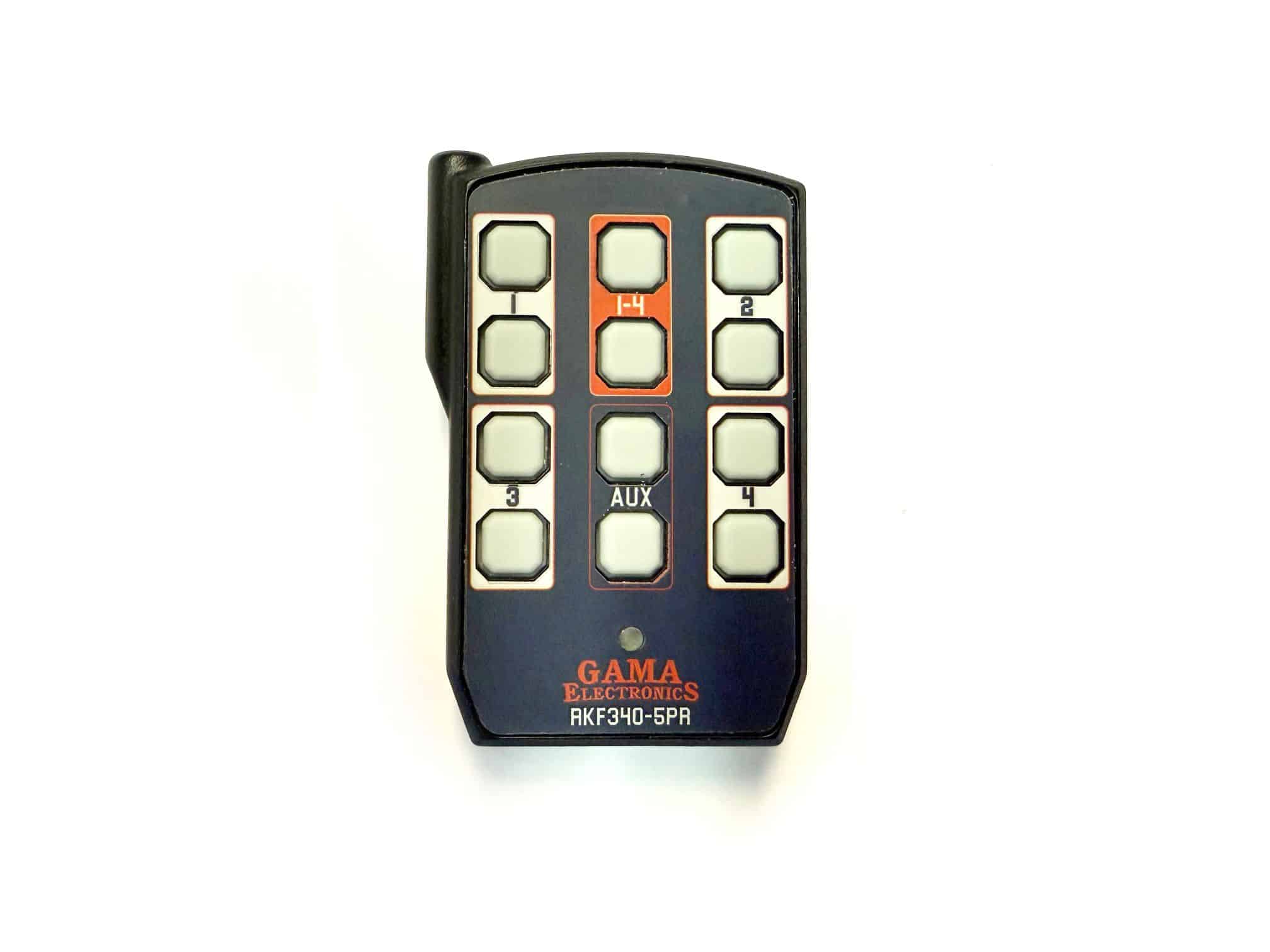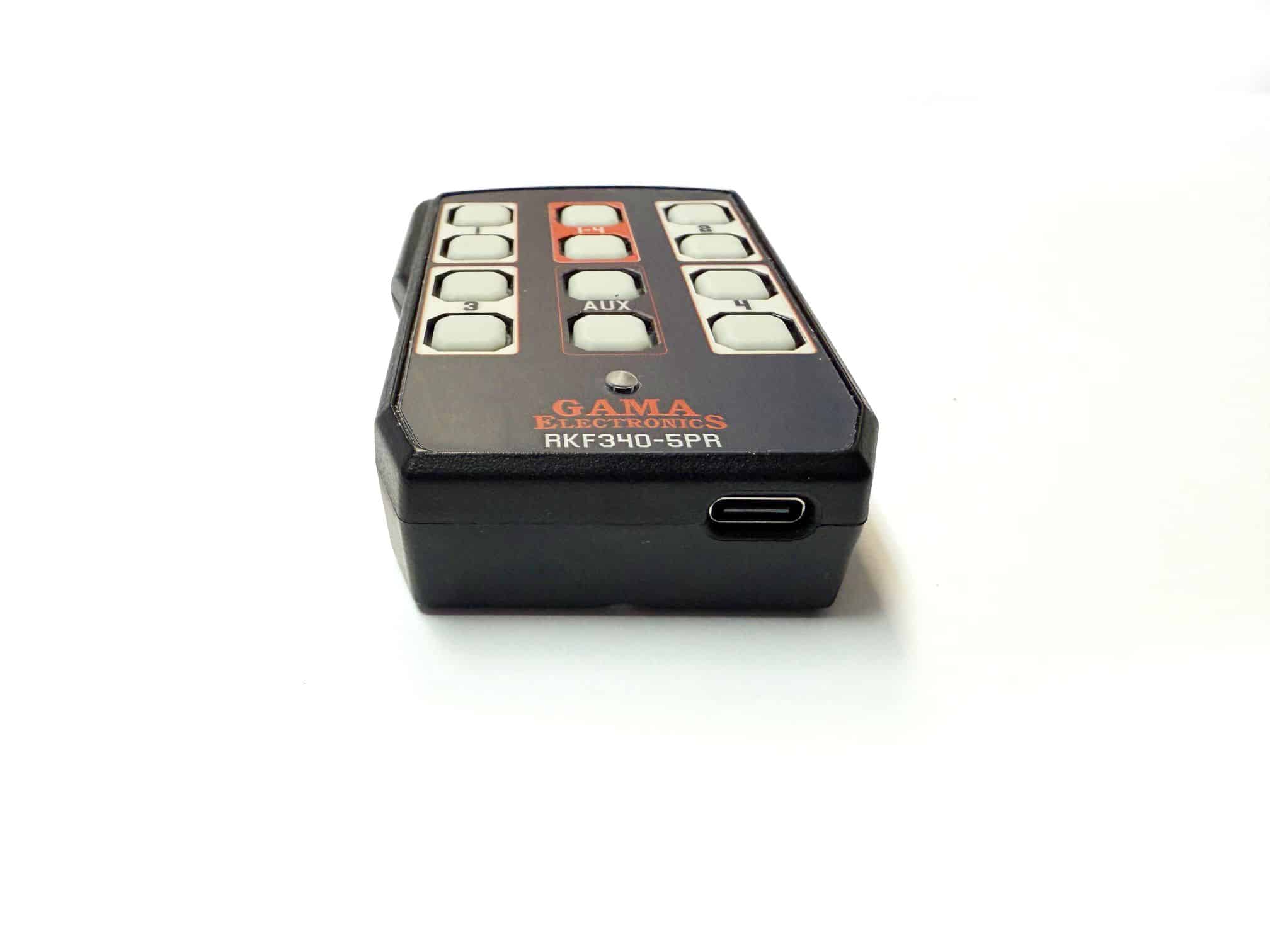 The RKF340-5PR-ASL is a USB-C rechargeable transmitter for use with GAMA Electronics, Inc. remote control systems. This item is a direct replacement for part number RFT340-5PR-ASL